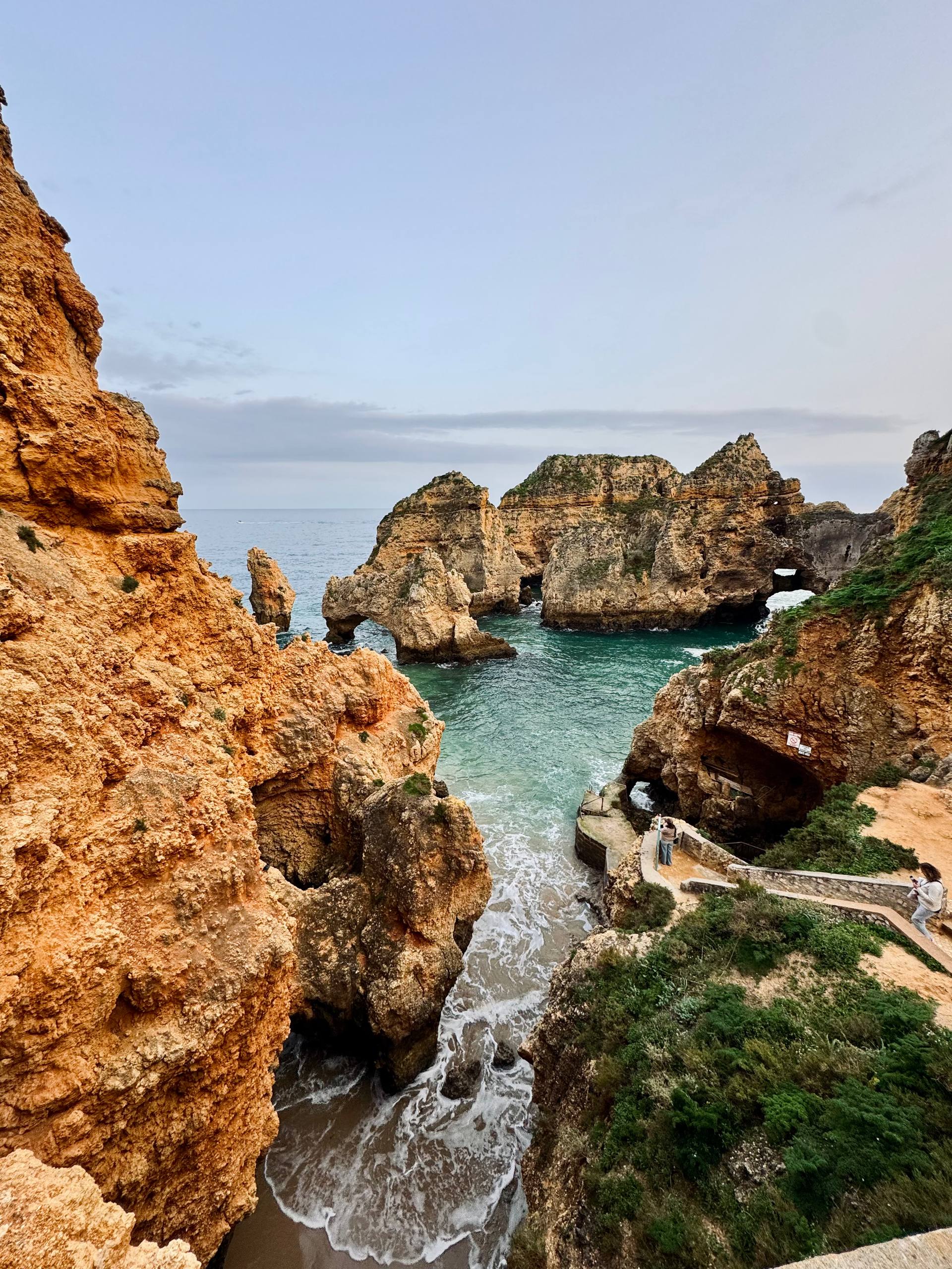 This section is known for its golden cliffs, the sea grottos of Ponta da Piedade, and a combination of wild beaches with urban infrastructure. A perfect stage to finish the hike with incredible panoramas and the comfort of a tourist town. We stay here for two nights. Distance: ~20 km Elevation gain: ~370 m, descent 340 m